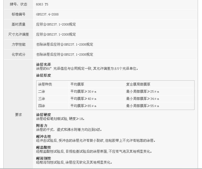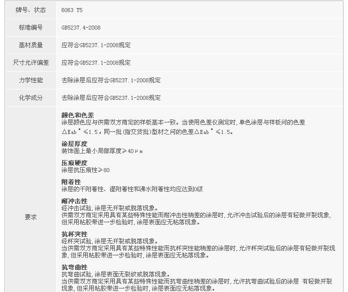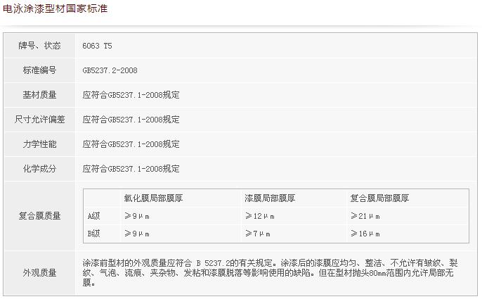 粉末噴涂型材國家標準